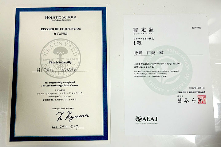 アロマ検定1級の資格を活かした癒しのカウンセリングで、